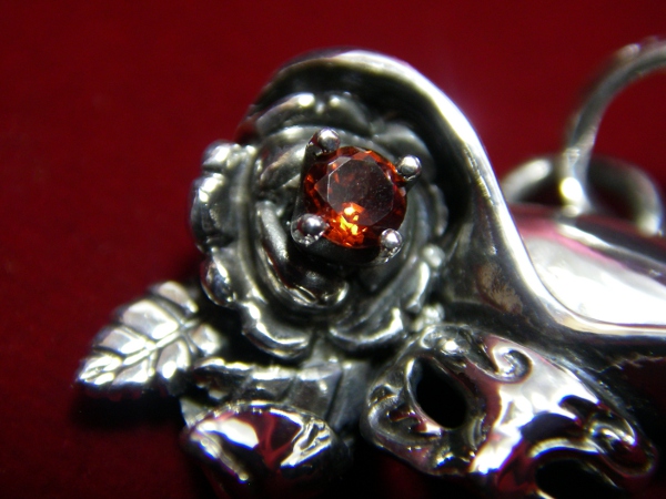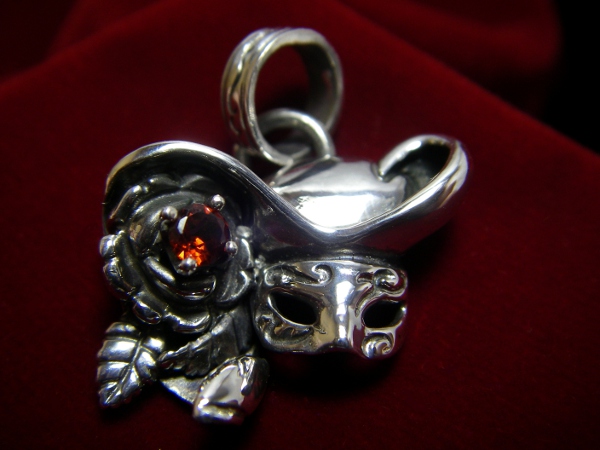 ガーネットを配置した薔薇がワンポイントのアクセントとなっている仮面。 男女問わず現在人気No.1の新作ペンダントトップです。